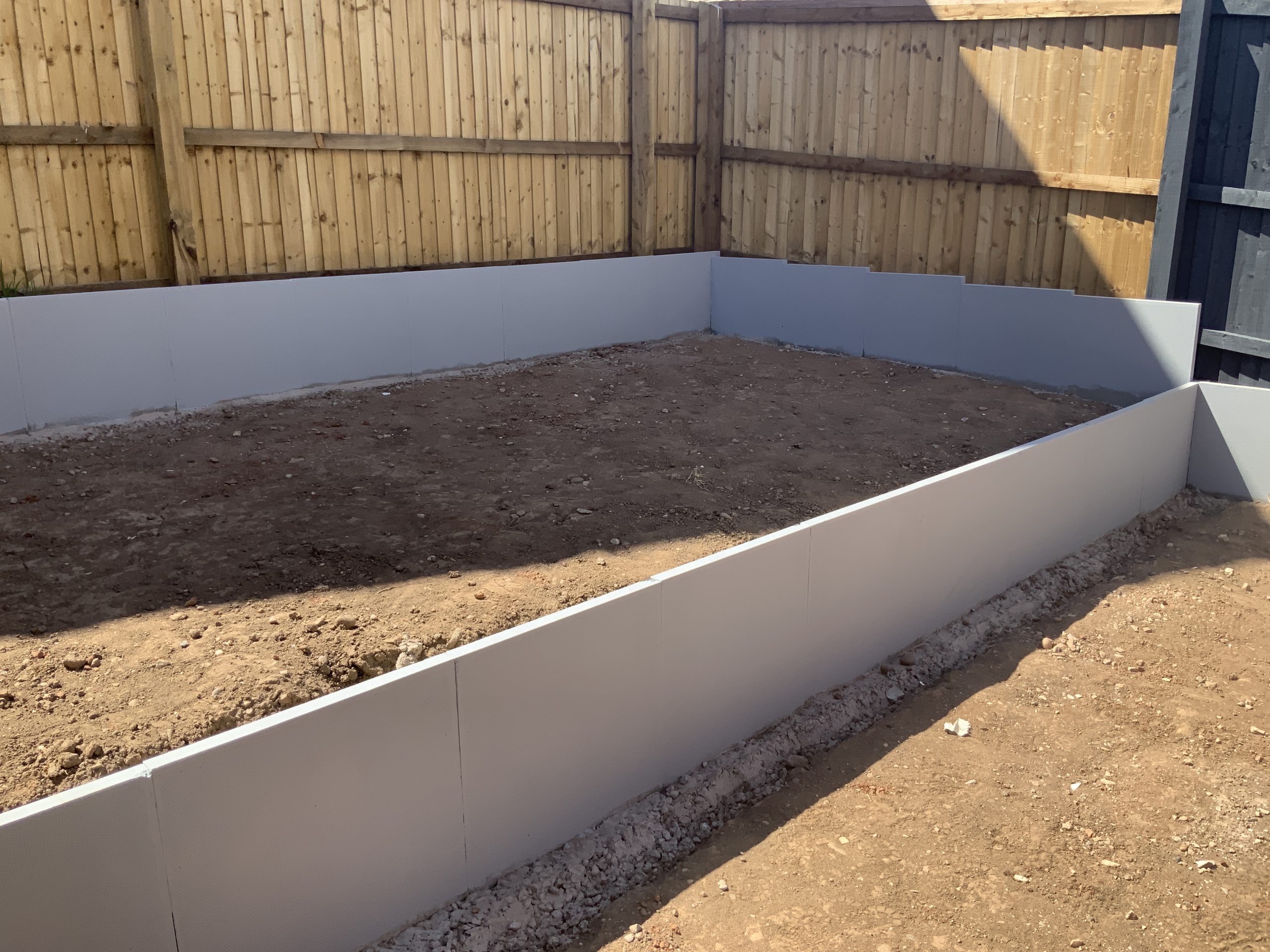 We’ve recently completed a challenging garden in Stone. The site was extremely steep and resulted in a 3-tier approach. The patio area, lower tier was paved, the middle tier had artificial grass installed and the top tier paved again. The paving was finished off with a polymer resin based jointing compound. Around the garden we added in 40-90mm white cobbles which will be later filled with grasses, palms, etc.