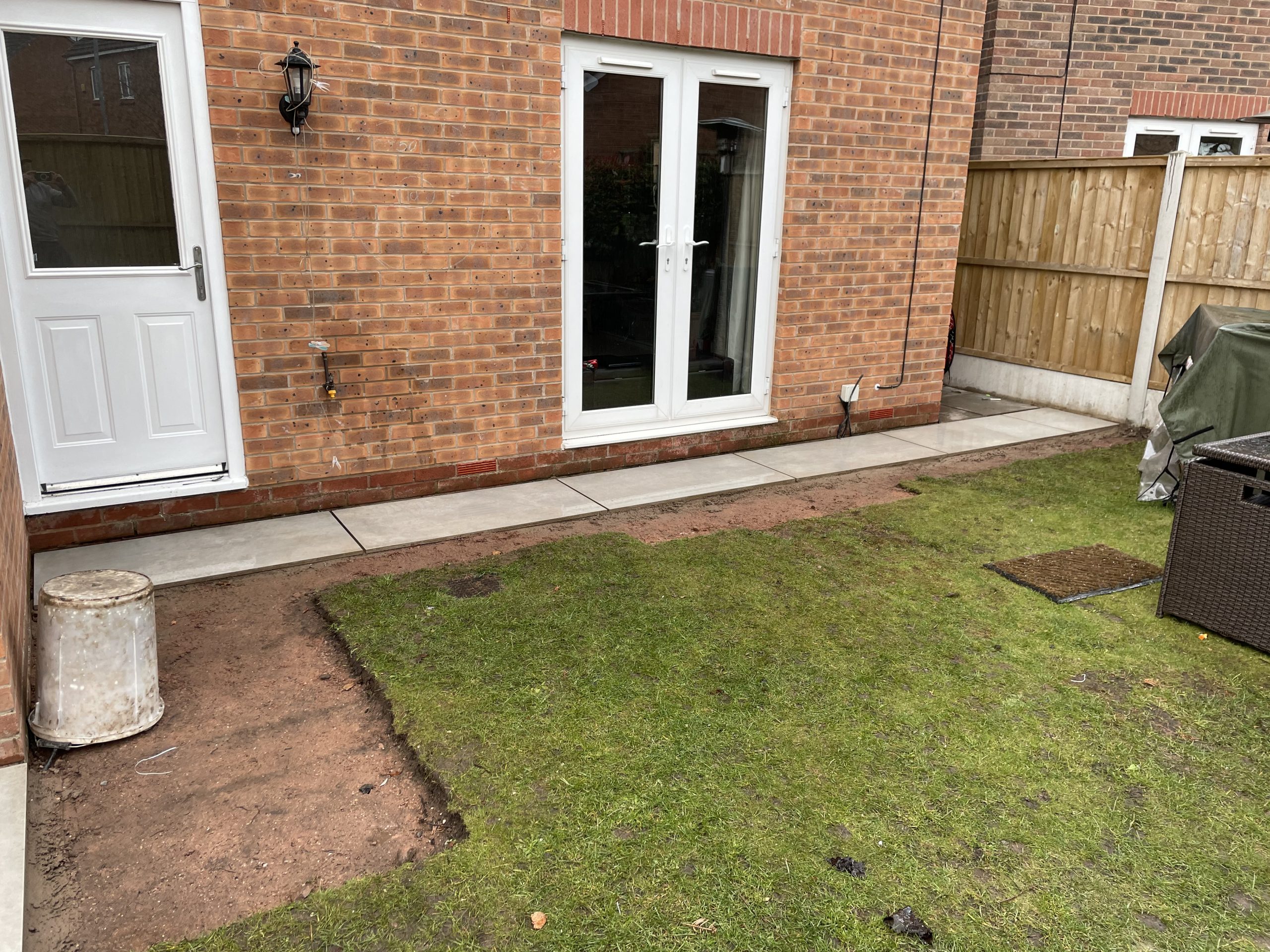 - Porcelain paving and new grass